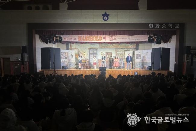 지난 10월 1일과 22일 ▲동일공업고등학교 ▲현화중학교에서 진행된 뮤지컬 '메리골드'는 옴니버스 형식으로 구성되어, 서로 다른 사연을 지닌 인물들의 이야기를 통해 청소년들이 가족과 친구, 그리고 자신의 삶을 되돌아보며 생명의 소중함과 공감의 가치를 느낄 수 있도록 기획됐다.
