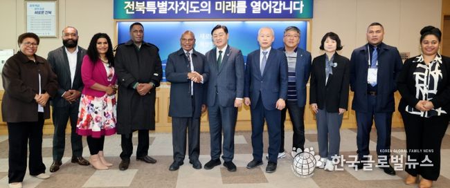 (한국글로벌뉴스 - 아셀 기자) 전북특별자치도는 10월 27일 파푸아뉴기니 국제무역·투자부 리차드 마루(Richard Maru) 장관을 단장으로 한 대표단이 전북도를 공식 방문해, 김관영 도지사와 면담을 갖고 농업, 교육, 국제개발협력 등 다양한 분야의 협력 확대 방안을 논의했다고 밝혔다.