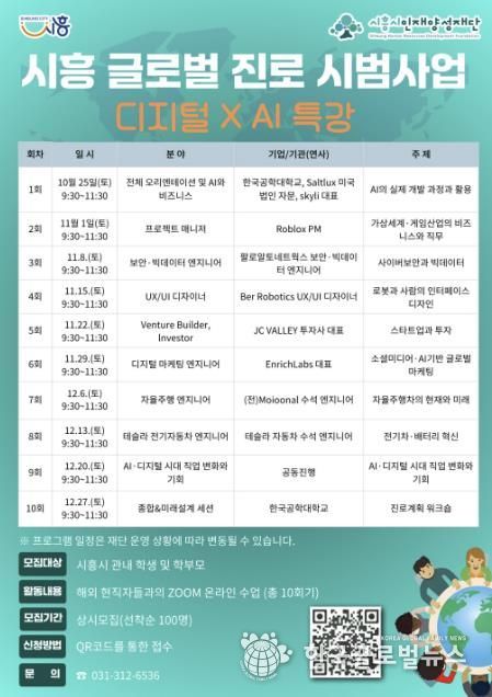 (한국글로벌뉴스 - 박소연 기자) 시흥시인재양성재단은 지난 10월 26일부터 관내 학생 및 학부모를 대상으로 ‘시흥 글로벌 진로 시범사업’ 운영을 시작했다.