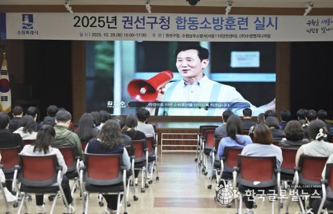 (한국글로벌뉴스 - 박소연 기자) 수원시 권선구는 지난 28일 수원남부소방서(서둔119안전센터)와 권선구 직원들과 함께 공공기관 합동소방훈련을 실시했다.