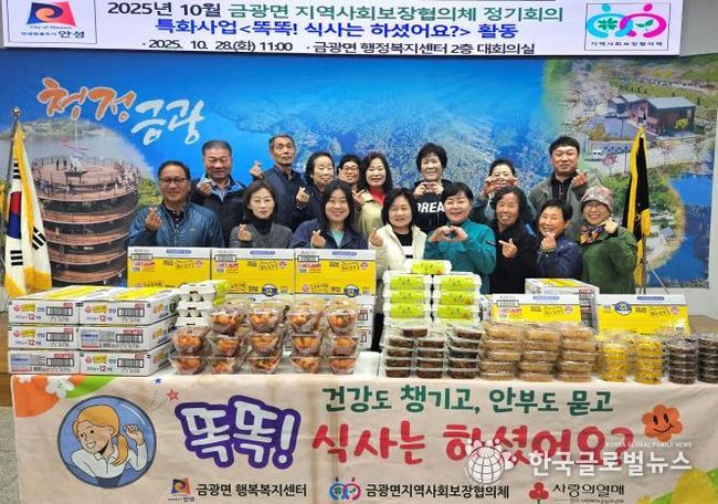 한편, 금광면지역사회보장협의체는 11월 ‘사랑의 김장 나눔 행사’를 추진해 어려운 이웃들에게 김장김치를 전달할 계획이다. 협의체는 앞으로도 지속적인 반찬지원사업, 안부확인, 생활지원 등 다양한 맞춤형 복지사업을 통해 지역의 돌봄 체계를 강화해 나갈 예정이다.