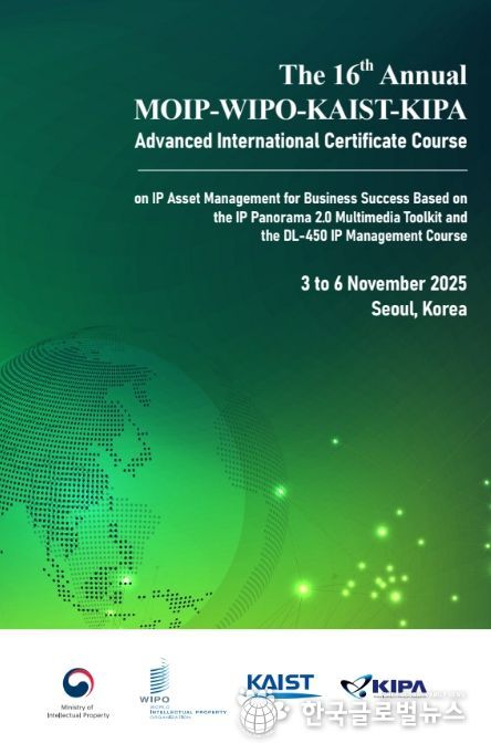 (한국글로벌뉴스 - 아셀 기자) 지식재산처는 세계지식재산기구(WIPO) 및 한국발명진흥회(KIPA)와 공동으로 11월 3일~ 6일까지 한국지식재산센터(서울 강남구)에서 '국제 지식재산 전문가 인증과정(AICC)'을 개최한다.