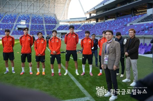 (한국글로벌뉴스 - 박지형 기자) 김진태 강원특별자치도지사(구단주)는 11월 3일 오후 3시, 일본 히로시마 에디온 피스 윙 스타디움을 방문해 아시아챔피언스리그 조별리그 원정경기를 앞두고 훈련 중인 강원FC 선수단을 격려하고 응원의 메시지를 전했다.