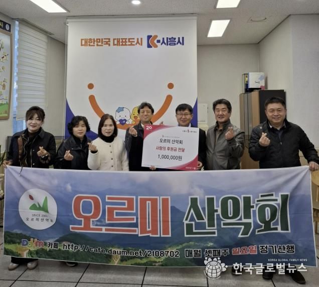(한국글로벌뉴스 - 박소연 기자) 시흥시 매화동 오르미 산악회는 지난 11월 10일 매화동 행정복지센터를 방문해 지역 내 저소득 취약계층을 위한 후원금 100만 원을 전달했다.