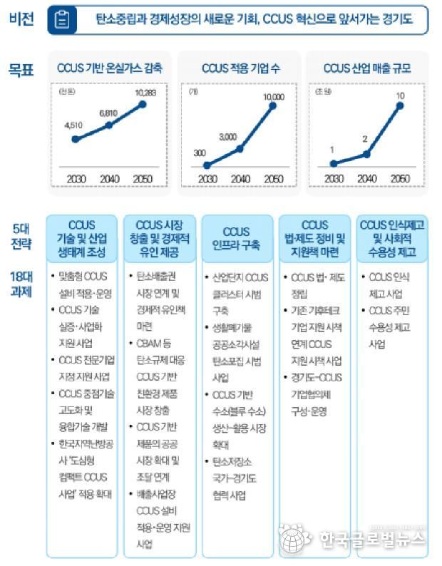 경기연구원은 최근 ‘경기도의 탄소중립 달성을 위한 CCUS 정책 육성 방안’ 보고서를 발간하고, 경기도형 CCUS 육성 로드맵과 5대 전략, 18개 세부과제를 제시했다.