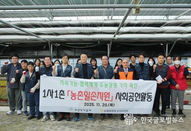 (한국글로벌뉴스 - 박소연 기자) 오산도시공사는 지난 20일 NH농협중앙회 오산시지부, 오산농협과 함께 도농상생을 위한 ‘1사1촌 농촌 일손지원 봉사활동’을 성공적으로 마무리했다고 밝혔다.