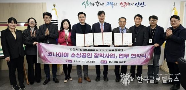 (한국글로벌뉴스 - 박소연 기자) 안산시는 지난 24일 코나아이 및 안산인재육성재단과 ‘코나아이 소상공인 장학사업’ 추진을 위한 3자 협약을 체결했다고 25일 밝혔다.