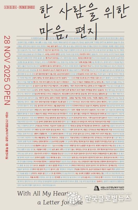 (한국글로벌뉴스 - 박소연 기자) 통일부 국립6·25전쟁납북자기념관은 개관 8주년을 맞이하여 11월 28일 오후, 경기도 파주시 소재 기념관 1층 특별전시실에서 '한 사람을 위한 마음, 편지'를 주제로 특별전시 개막식을 개최한다.