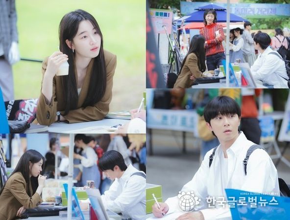 연극 동아리 지리멸렬을 통해 서로를 알게 되는 만큼 선배 박세영(이주영 분)과 함께 화기애애함 가득한 동아리 모집 파티 현장에 마주 앉아 있는 두 사람에게서는 풋풋한 기류가 느껴지고 있다.
