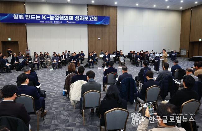 (한국글로벌뉴스 - 박종욱 기자) 농림축산식품부는 12월 22일 오후 청주오스코(OSCO)에서 '함께 만드는 K-농정협의체' 성과보고회를 개최했다. 이번 행사에는 K-농정협의체 공동대표인 송미령 농식품부 장관과 류진호 한국4-H청년농업인연합회 회장을 비롯한 협의체 위원 120여 명과 농어업농어촌특별위원회 김호 위원장을 포함한 관계자 30여 명 등 총 150여 명이 참석했다.