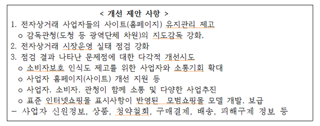 이어 “전자상거래 사업자 중 다수를 차지하는 소규모 개인사업자의 경우 소비자보호 인식과 영업관리 역량이 취약한 만큼, 지도·교육·컨설팅 등 실질적인 지원과 함께 감독기관의 점검 강화가 필요하다”고 강조했다.