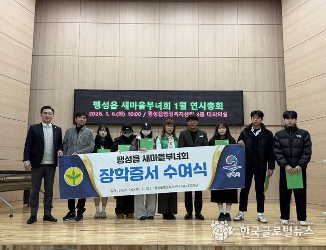 박성애 팽성읍 새마을부녀회 총회장은 “이번 장학금 및 장학증서 수여를 통해 학생들의 노력에 작은 응원을 보낼 수 있어 뜻깊다”며 “앞으로도 지역 미래를 이끌어 갈 인재 양성을 위해 지속적인 관심과 지원을 이어가겠다”고 밝혔다.