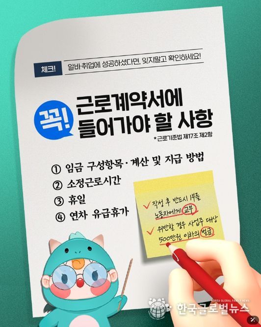 (한국글로벌뉴스 - 박경희 기자) 체크! 알바·취업에 성공하셨다면, 잊지말고 확인하세요!