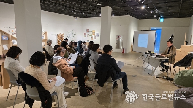 전시는 관람에 그치지 않고, 책과 사유를 확장하는 연계 강연 프로그램으로 이어진다. 오늘(13일)은, ‘호모북커스’ 김성수 대표가 〈문해력 위기의 시대, 도서관적 시간의 회복〉을 주제로 강연을 진행하여 인공지능 시대 이후 심화되는 문해력 위기 속에서, 느리게 읽고 깊이 사유하는 ‘책 읽기의 시간’이 갖는 의미와 가능성을 조명했다.