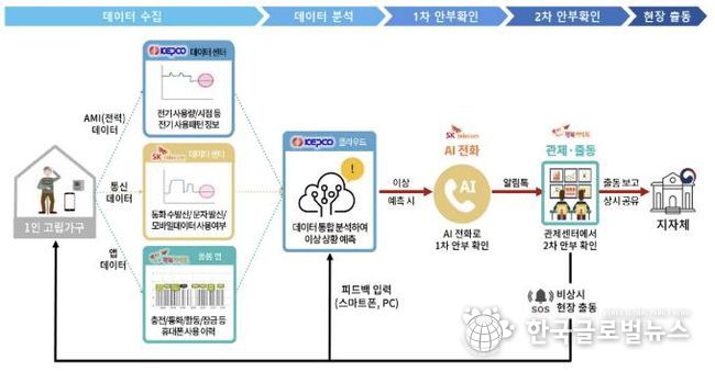 이 서비스는 한국전력공사, SK텔레콤, 행복커넥트가 함께 참여한다. 1인 가구에서 일정 기간 휴대폰 통신기기의 전기 사용량 변화가 감지되지 않으면 이상 상황으로 판단하고 단계별 확인 절차에 들어간다.