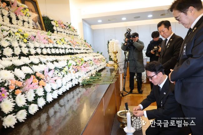 (한국글로벌뉴스 - 박소연 기자) 김민석 국무총리가 27일 종로구 서울대학교병원 장례식장에서 故 이해찬 민주평통 수석부의장의 빈소를 조문하고 있다.