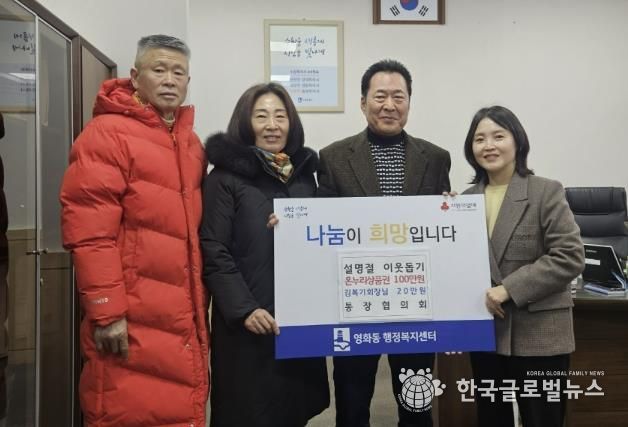 영화동 통장협의회는 매년 명절 때마다 통장들이 자발적으로 뜻을 모아 지역사회에 꾸준히 후원하고 있으며, 이날 전달된 성금은 지역 내 취약계층 가구에 직접 배분되어, 명절을 맞는 어려운 이웃들을 위해 사용될 예정이다.