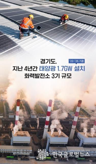 (한국글로벌뉴스 - 박소연 기자) 경기도는 민선 8기(2022~2025년) 동안 총 1.7GW 규모의 태양광발전소가 도에 신규 설치됐다고 2일 밝혔다. 1.7GW는 통상 1기당 500MW 규모인 화력발전소 3기를 상회하는 설비 규모이다. 특히 2025년 한 해만 약 600MW*의 신규 태양광 발전 설비가 보급됐는데, 이는 민선 8기 전체 설치량의 약 3분의 1이 넘는 수준이다. (* 상업용 480MW, 자가용 설비는 과거 데이터로 추정)