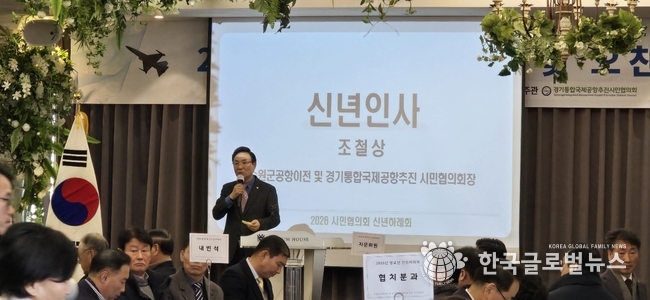 (한국글로벌뉴스 -박소연 기자) 수원군공항이전 및 경기통합국제공항 추진 시민협의회(회장 조철상)는 2026년 새해를 맞아 ‘수원군공항이전 시민협의회 신년회’를 개최하고, 군공항 이전의 조속하고 합리적인 추진을 위한 시민 의지를 다시 한 번 결집했다.
