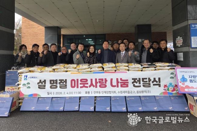 (한국글로벌뉴스 - 박소연 기자) 수원시 장안구 연무동 행정복지센터는 지난 4일, 설 명절을 맞아 관내 어려운 이웃을 위한 나눔 전달식을 개최했다.