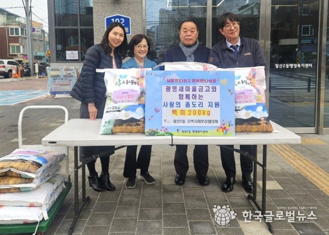 (한국글로벌뉴스 - 박소연 기자) 광명시 철산2동 지역사회보장협의체는 지난 4일 광명새마을금고로부터 ‘사랑의 좀도리 운동’을 통해 마련한 쌀 200kg(20kg 10포)을 기부받아 동절기 취약계층 10가정에 전달했다.