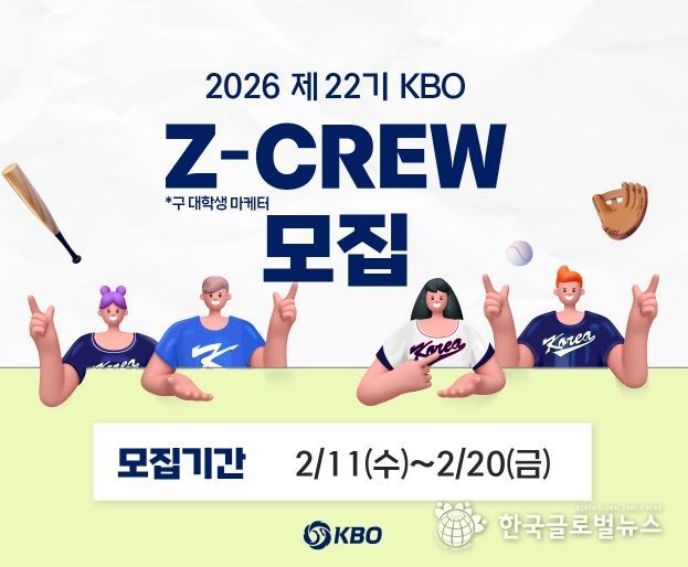 (한국글로벌뉴스 - 박지형 기자) KBO가 2월 11일(수)부터 2026 제 22기 KBO Z-CREW(제트크루)를 모집한다.