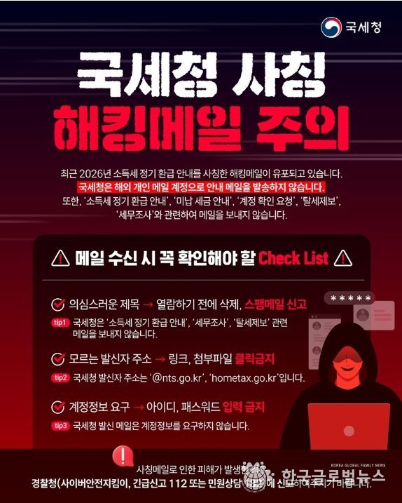 (한국글로벌뉴스 - 박경희 기자) ■ 국세청 사칭 해킹메일 주의
