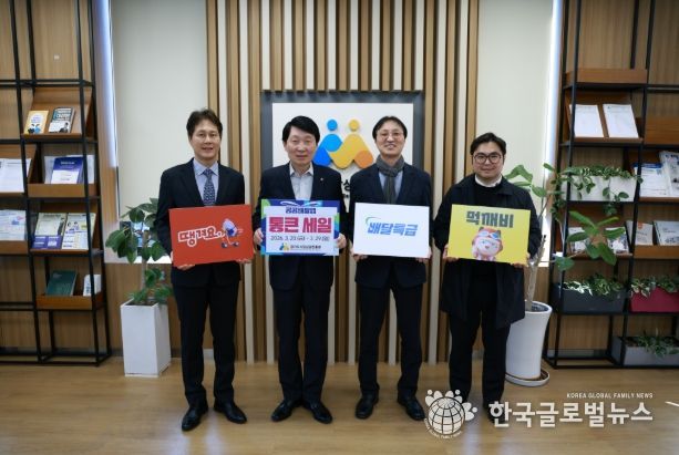 (한국글로벌뉴스 - 박소연 기자) 경기도시장상권진흥원은 ‘2026년 상반기 경기 살리기 통큰 세일’과 연계해 공공배달앱 할인쿠폰 지원을 위해 배달특급, 땡겨요, 먹깨비 관계자와 13일 경상원 양평 본원에서 간담회를 가졌다고 밝혔다.