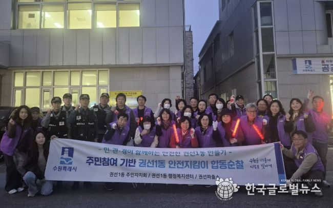 (한국글로벌뉴스 - 박소연 기자) 수원시 권선구 권선1동 주민자치회는 지난 31일 저녁, 지역 주민들과 함께 권선1동 일대에서 민·관·경 합동순찰을 실시했다.