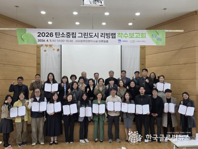 (한국글로벌뉴스 - 박소연 기자) 수원특례시와 수원도시재단이 1일 서수원주민편익시설에서 ‘2026년 탄소중립 그린도시 리빙랩 착수보고회’를 열고, 탄소중립 그린도시 리빙랩 사업의 추진 방향을 알렸다.