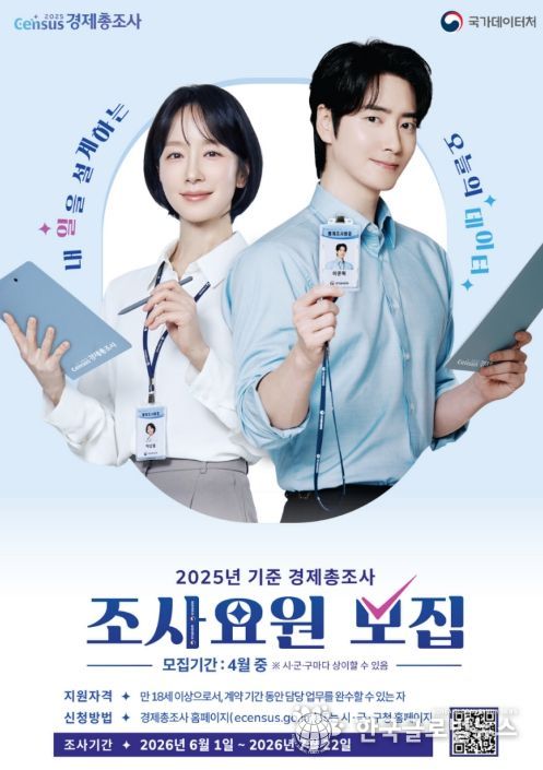 (한국글로벌뉴스 - 박소연 기자) 안성시는 국가데이터처(구 통계청)가 주관하는 '2025년 기준 경제총조사'의 원활한 추진을 위해 통계조사요원 80명을 모집한다고 밝혔다.