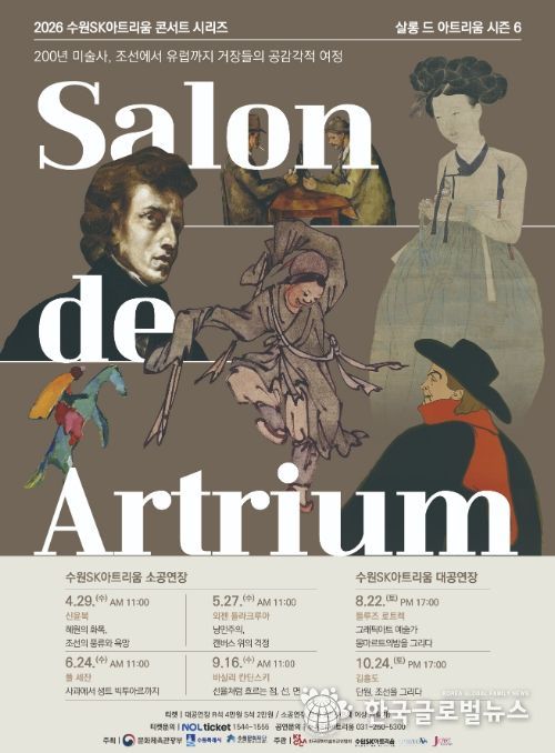 4월 29일에는 수원SK아트리움의 대표공연인 ‘살롱 드 아트리움’이 여섯 번째 시즌으로 돌아온다. ‘살롱 드 아트리움’은 명화와 클래식 연주를 함께 보고 듣는 콘서트 시리즈다. 올해는 ‘200년 미술사, 조선에서 유럽까지의 거장들의 공감각적 여정’이라는 주제 아래 4월부터 10월까지 관객들을 맞이할 예정이다.