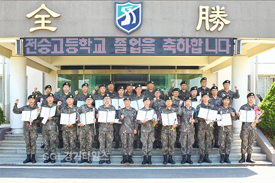 육군 제51보병사단은 19일 고등학교 과정 검정고시에 합격한 장병들을 대상으로 전승고등학교 졸업식을 개최했다.