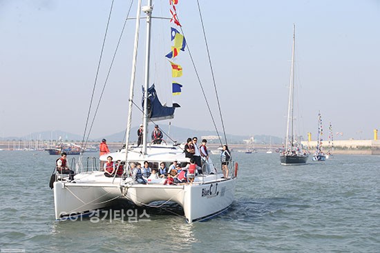 전곡항에 뜬 70여척의 크고 작은 배들은 한 번에 400여명의 관광객을 동시에 바다로 실어 나르며 장관을 연출했다.