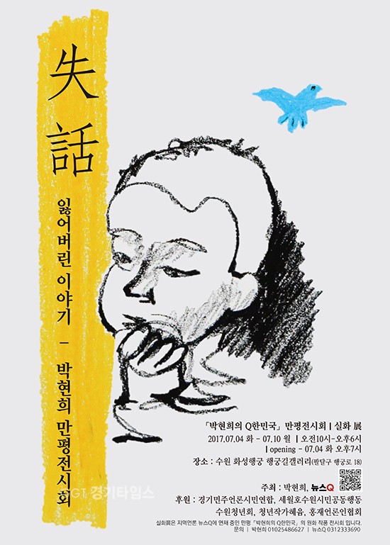 만평 ‘박현희의 Q한민국’ 원화 전시회가 오는 7월 4일부터 10일까지 1주일 동안 수원 화성행궁 행궁길갤러리에서 열린다고 12일 밝혔다. 주제는 ‘失話-잃어버린 이야기’다.