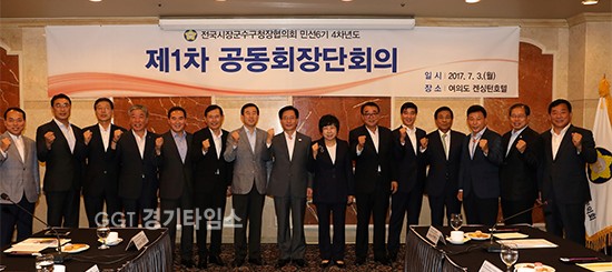[경기타임스] 전국시장·군수·구청장협의회(이하 전국협의회)는 지난 3일 여의도 켄싱턴호텔에서 제1회 공동회장단 회의를 열고, 민선6기 4차년도 대표회장으로 박성민 울산 중구청장이, 사무총장으로 김윤식 시흥시장이 각각 선출됐다.