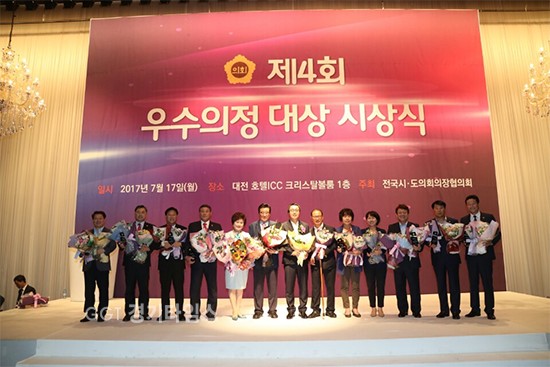 우수의정 대상은 전국시도의회의장협의회 주관으로 지난 1년 동안 주민들의 삶의 질 향상과 지역발전에 기여한 공이 큰 우수의원들을 전국 시․도의회 의장들의 추천으로 선발했다.
