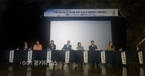 [경기타임스]경기도의회 정대운 의원(더불어민주당, 광명2)를 비롯한 김동규 의원(자유한국당, 파주3), 이동화 의원(바른정당, 평택4), 오세영 의원(더불어민주당, 용인1) 등 여성가족교육협력위원회 위원들은 4일 광명동굴 ‘예술의 전당’에서 가정어린이집 질 제고를 위한 공공성 강화방안 토론회를 개최했다.