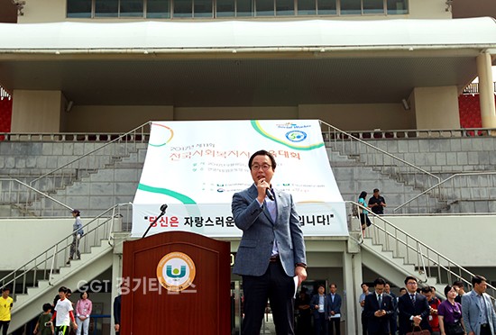 [경기타임스]경기도의회 정기열 의장(더불어민주당, 안양4)은 9일 안양종합운동장에서 열린 ‘제11회 전국사회복지사 체육대회’ 개회식에 참석했다.