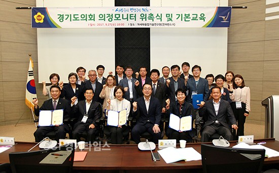 [경기타임스]참여와 소통을 기반으로 도민이 직접 정책을 제안하고 평가하는 경기도의회(의장 정기열) 의정모니터단이 9.27(수), 광교테크노밸리 내차세대융합기술연구원에서 위촉식 및 교육을 마치고 본격적으로 첫 활동을 시작한다.