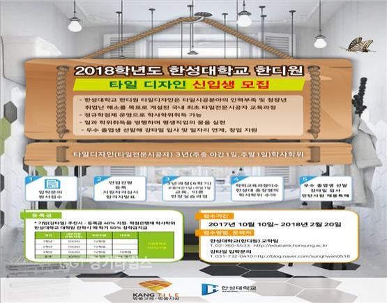 [경기타임스] 한성대학교 디자인아트평생교육원(이하 한디원)이 2018학년도 타일디자인 과정 신입생을 모집한다.