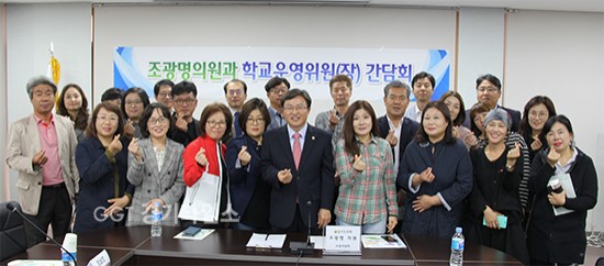 [경기타임스] 경기도의회 조광명(더불어민주당, 화성4)은 16일 화성시 근로자종합복지관에서에서 병점, 봉담, 정남, 기안 지역 초‧중‧고교 학교운영위원장 간담회를 개최하여 학교 현장의 애로사항을 청취했다.
