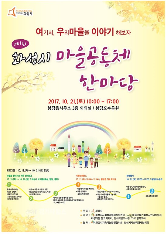 19일과 20일 마을로 찾아가는 작은 컨퍼런스와 21일 봉담읍 회의실 및 봉담호수공원에서 진행되는 기획컨퍼런스·야외 부대행사로 이뤄진다.