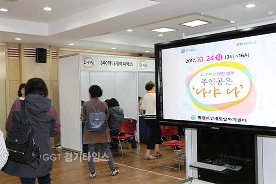 [경기타임스]팔달새일센터는 ‘4050 여성 취업박람회’가 24일 수원시가족여성회관 운영관, 교육관, 주차장 등 곳곳에서 열렸다고 밝혔다.