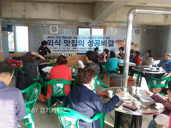 경기창작센터, 수원대학교 호텔관광대학원, 수원화성융합문화센터와 함께 마련한 이번 교육은 제부도 내 식당, 펜션, 모텔 업주 및 종사원 모두 33명이 참석했다.