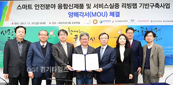 [경기타임스] 화성시는 스마트 안전분야 융합신제품 및 서비스 실증 리빙랩 기반구축사업을 위해 아주대 등 7개기관과 MOU을 체결했다고 20일 밝혔다.