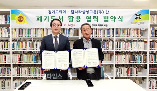 [경기타임스] 경기도의회는 경기도의회도서관에서 탐나라상상그룹(주) 강우현 대표와 폐기도서 활용협력 관련 MOU를 체결했다고 24일 밝혔다.