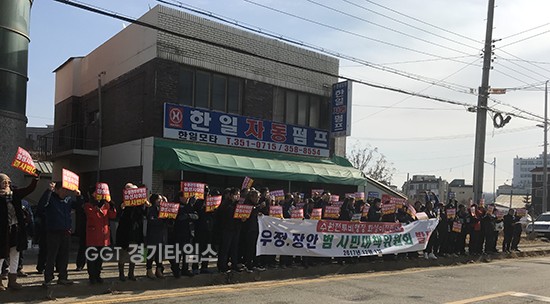 [경기타임스] 지난 2일 우정·장안 수원전투비행장 화성이전 반대 범시민대책위원회는 ‘수원전투비행장 유치위원회’가 청년단 발대식을 개최하는 것에 대하여 규탄하는 시위를 열었다.