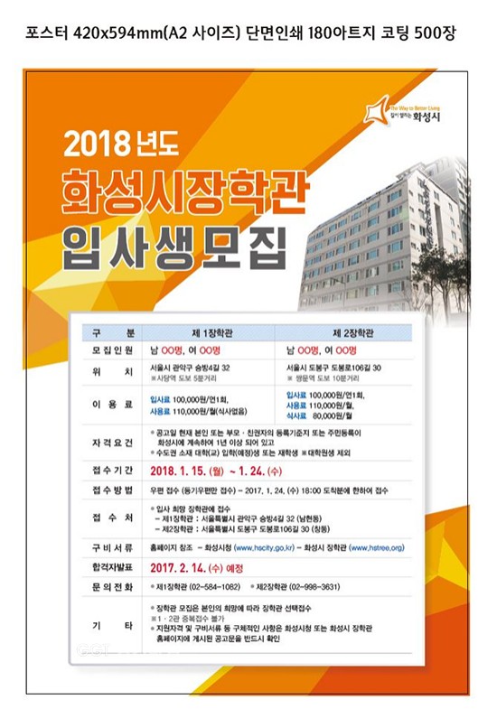 [경기타임스] 화성시인재육성재단이 제1장학관과 제2장학관 입사생을 선발한다.