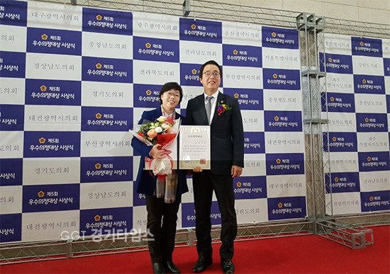 우수의정대상은 의장협의회에서 전국 광역의회 의원 중 집행부 견제, 도정질문을 통한 정책대안 제시, 주민 행복제고를 위한 입법활동 등으로 지역 또는 지방의회 발전에 기여한 의원들을 선정해 수여하는 상이다.